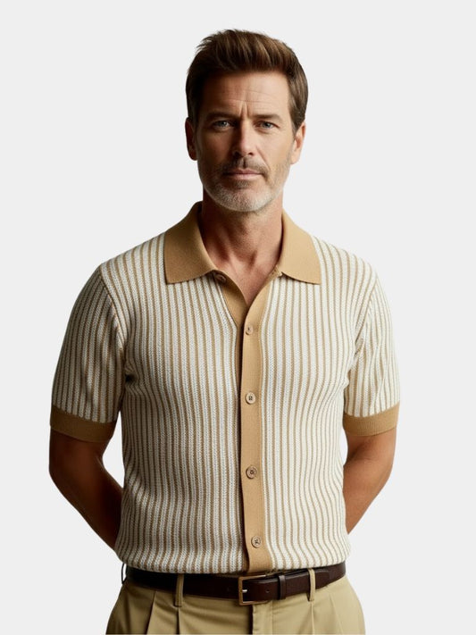 • Striped Knit Polo Shirt - Cross & Crown - Cross & Crown