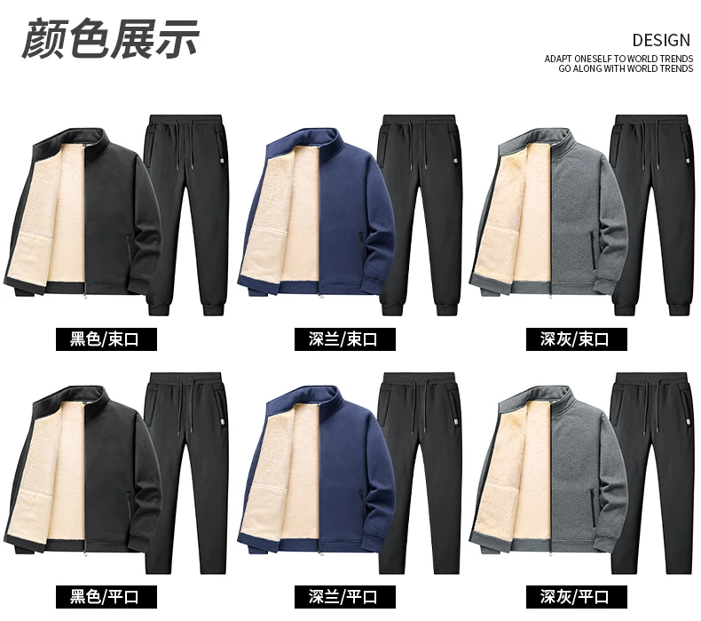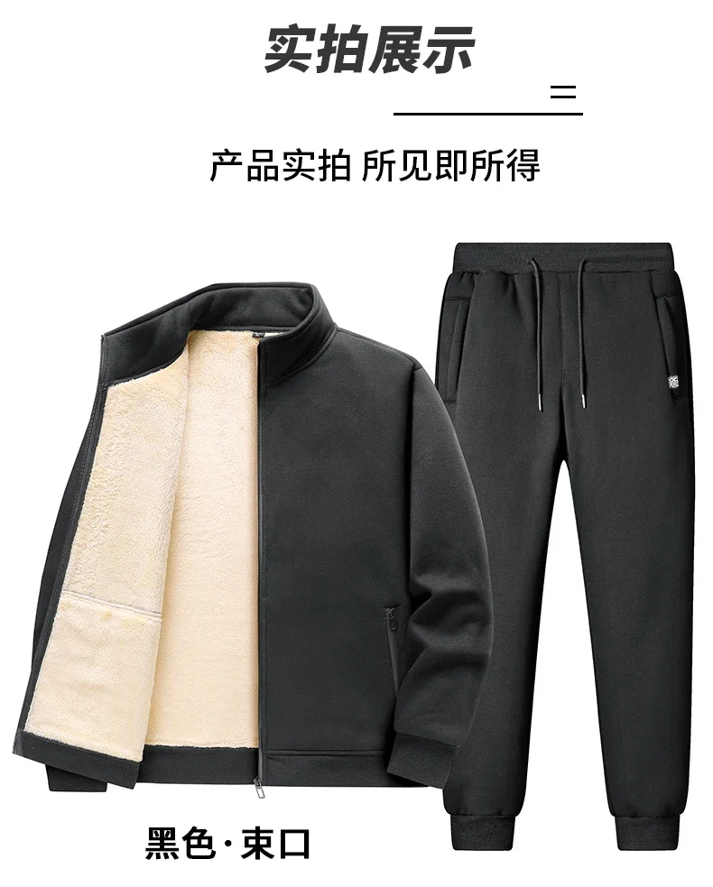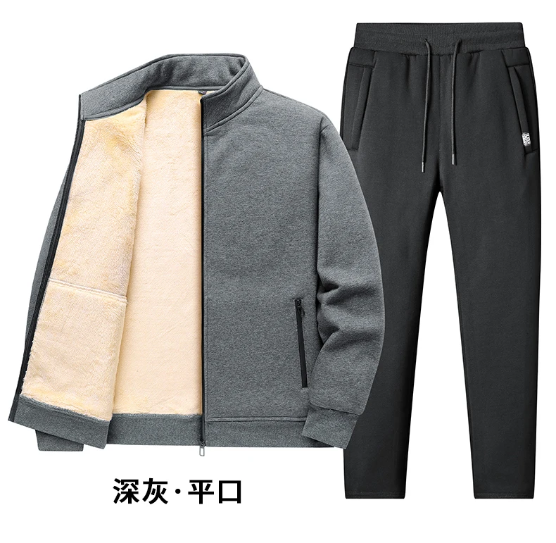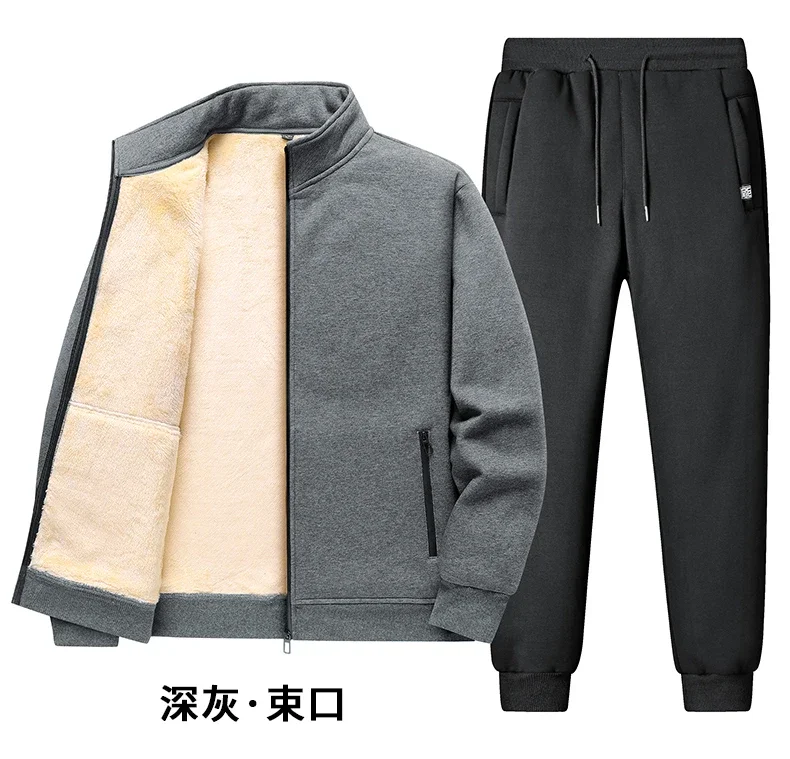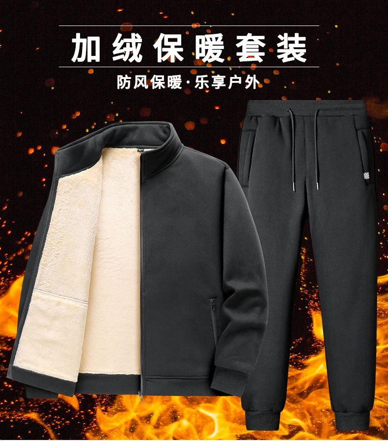 Warme winterse kasjmier sets: thermische hoodies, fleece trainingspakken met capuchon, winddichte hardloopkleding voor heren, 2-delige set bestaande uit jas en broek.
